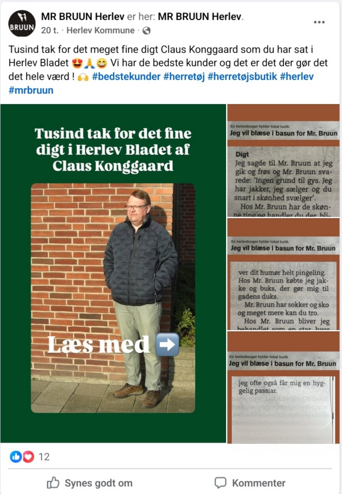 Jeg sagde til Mr. Bruun at jeg gik og frøs og Mr. Bruun svarede: "Ingen grund til gys. Jeg har jakker, jeg sælger og du snart i skønhed svælger". |